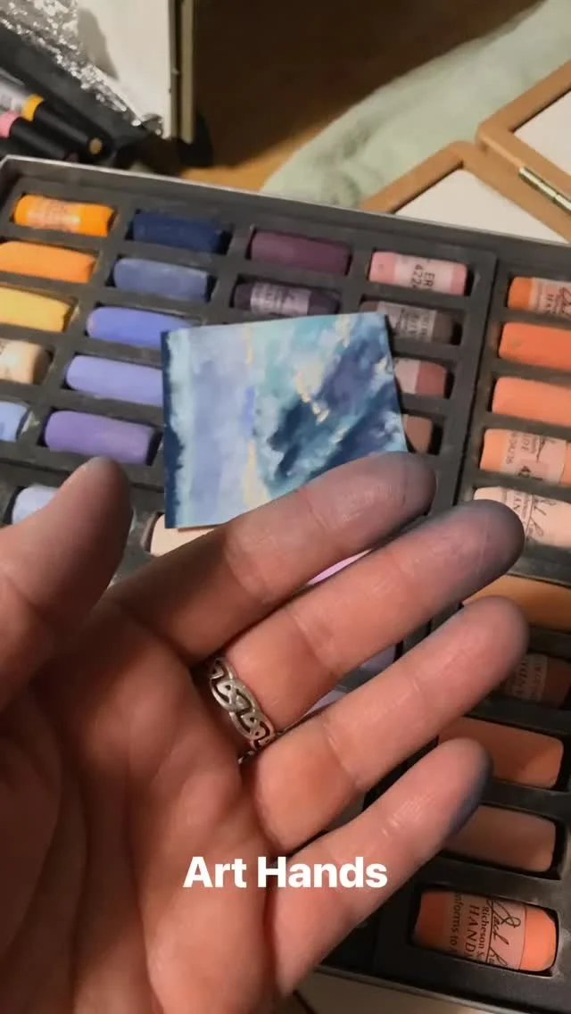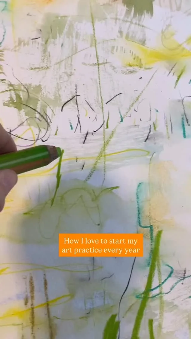 Final Step I assessed the work again and decided to add some punch of color. So you’ll see, in the photos above, I added in pinks and red oil pastel marks for contrast. I redefined some of the blue marks, making them less subtle.